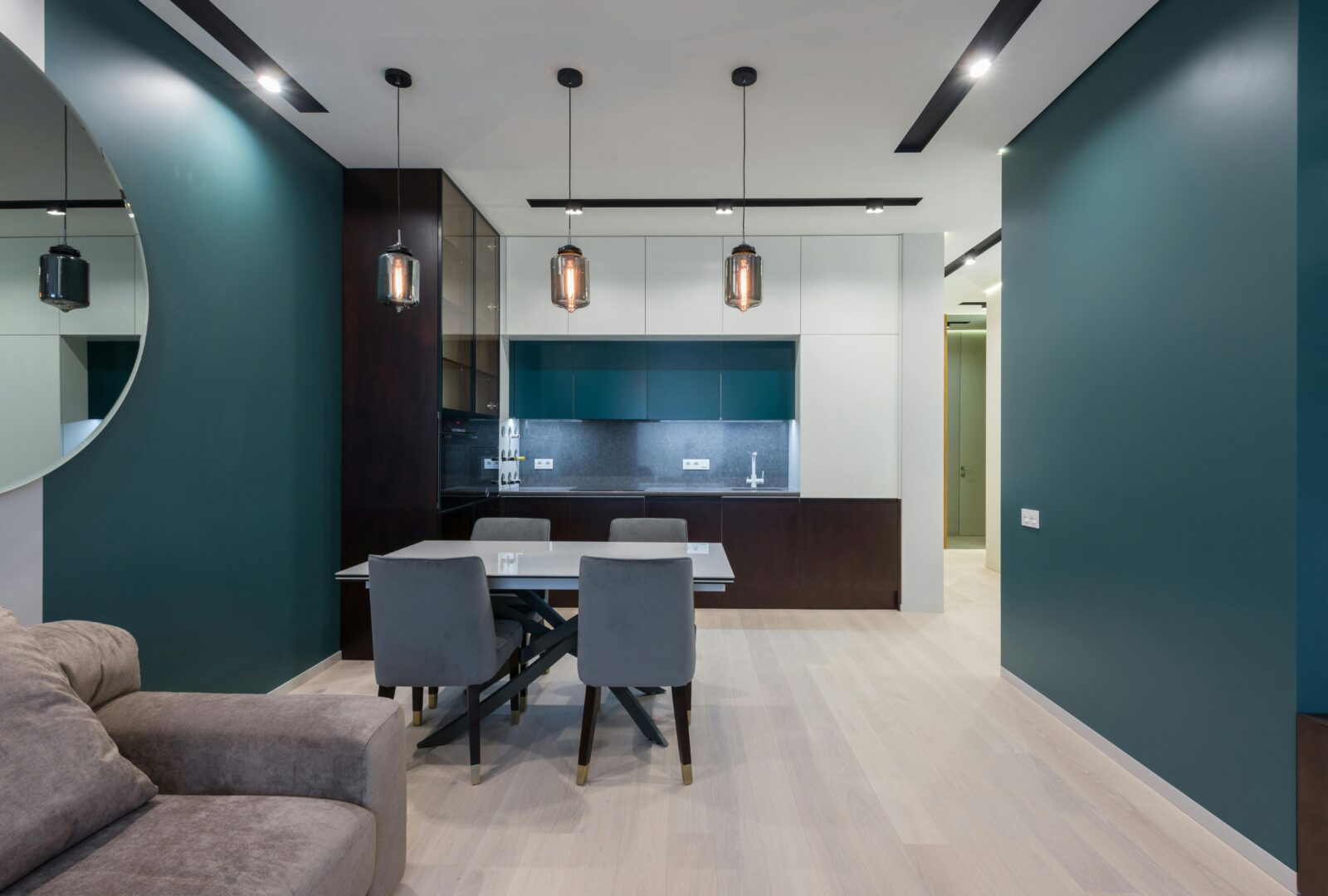 Anschließend gelangt man direkt in den modernen Wohn-/Essbereich. Dieser besticht durch eine offene Designküche, die mit den modernsten Küchengeräten ausgestattet ist. Der ganze Wohn-/Essbereich ist lichtdurchflutet, dank seiner großen Fenster. Eine Klimaanlage, die man im ganzen Haus findet, sorgt für eine angenehme Temperatur den ganzen Tag. Mit dem integrierten Smarthome System lässt sich die Villa einfach steuern.